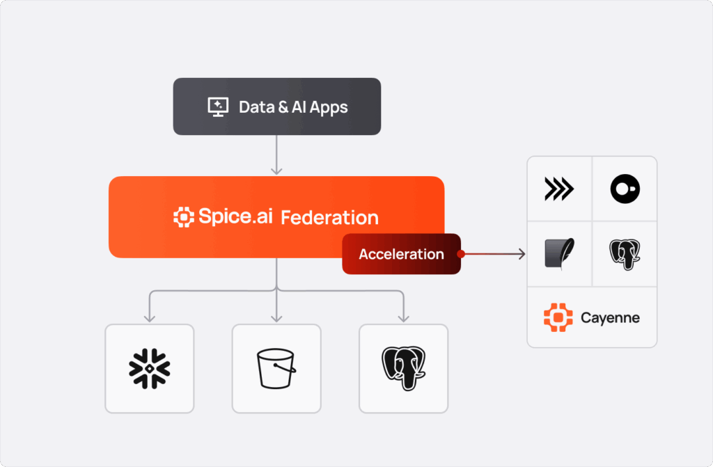 SQL federation and acceleration is at the core of Spice and the applications it enables; enterprise AI applications depend on contextual data drawn from many different systems, and that data must be fast and available to search and reason over in real time.'
