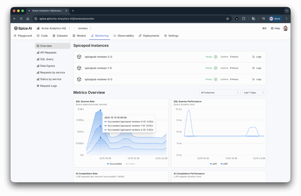 Below are some of the major features that defined 2025 across the core pillars of the Spice platform: federation and acceleration, search, and embedded LLM inference.'