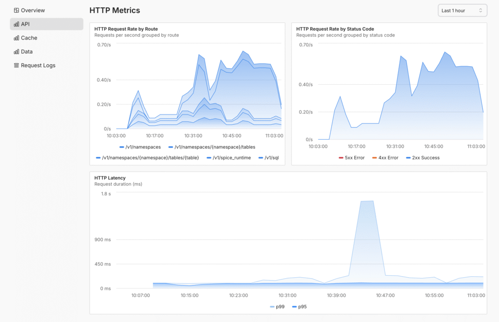 Spice leans into the industry shift to object storage as the source of truth for applications. These workloads are often multi-terabyte datasets using open data lake formats like Parquet, Iceberg, or Delta that must serve data and search queries to applications with sub-second performance.'