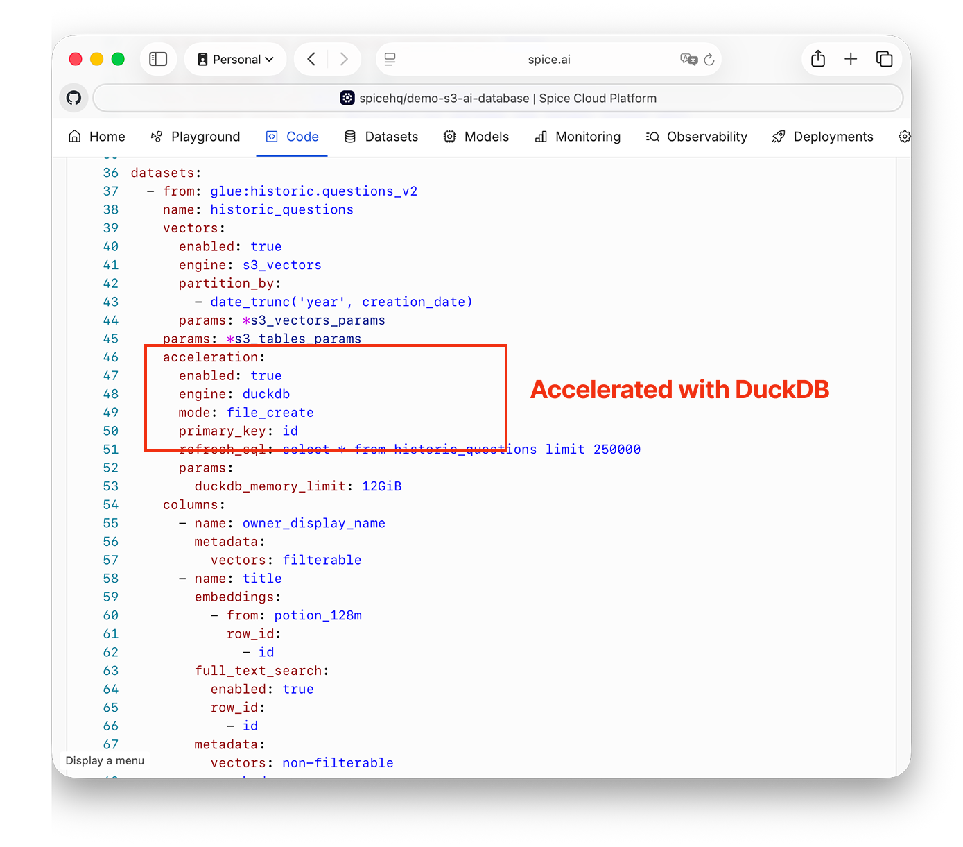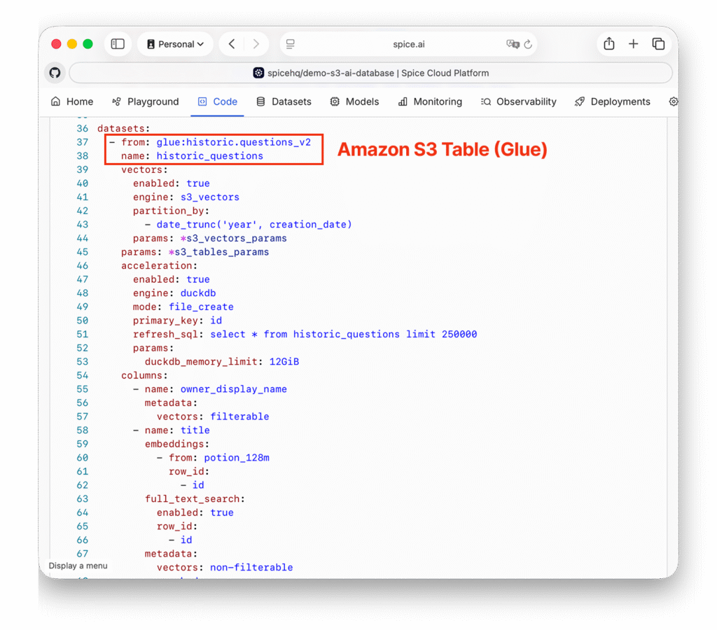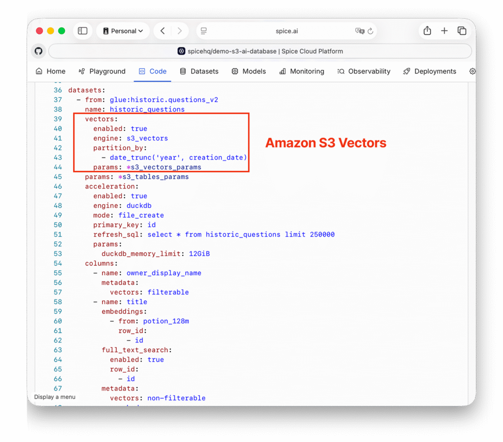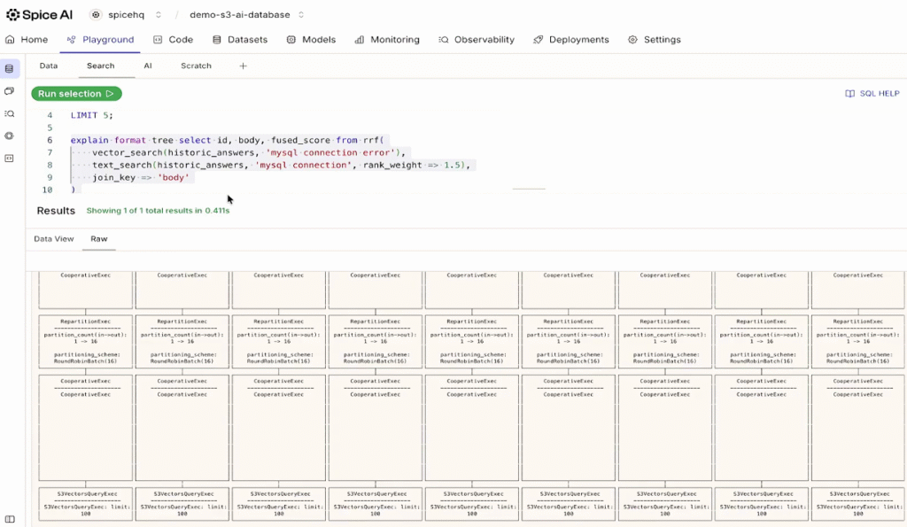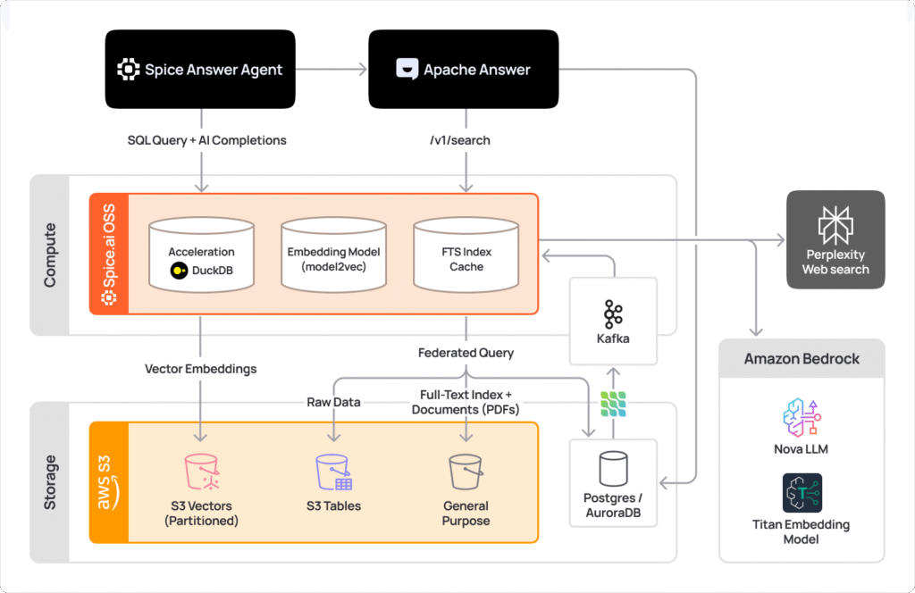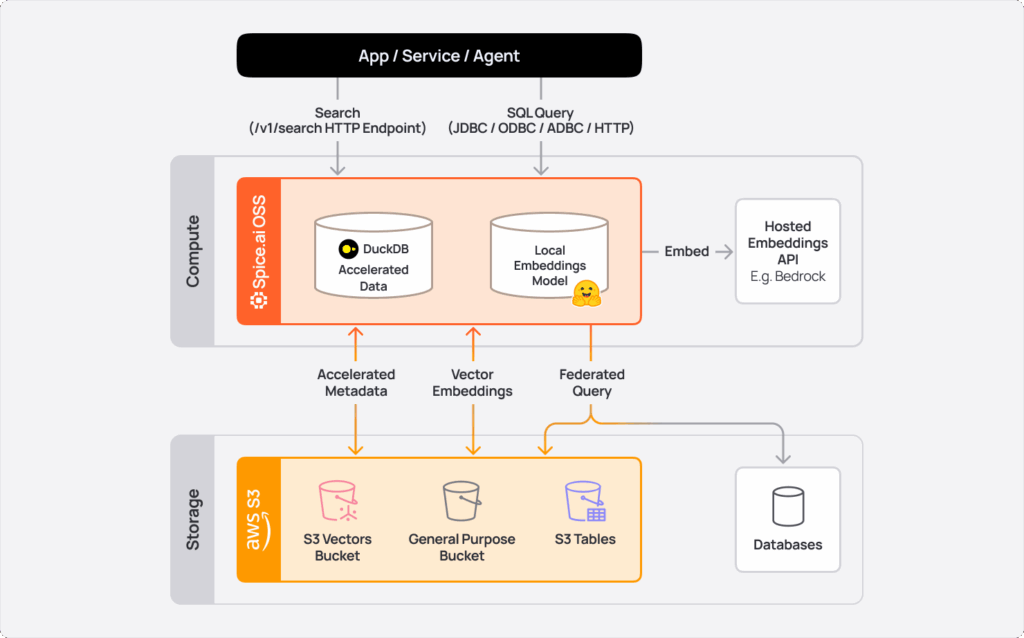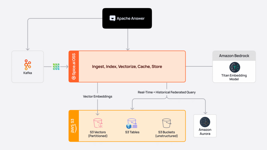 In July, Spice introduced native support for Amazon S3 Vectors as a day 1 launch partner at the AWS Summit in NYC. Vector similarity search, structured filters, joins, and aggregations can now be executed in SQL within Spice without duplicating data. '